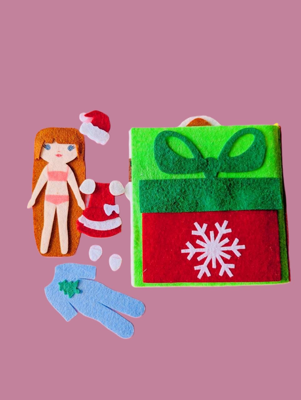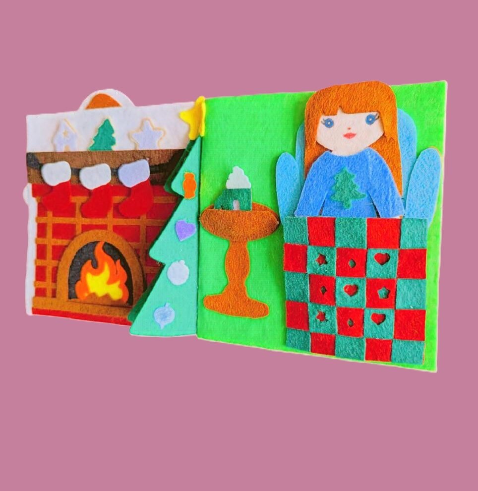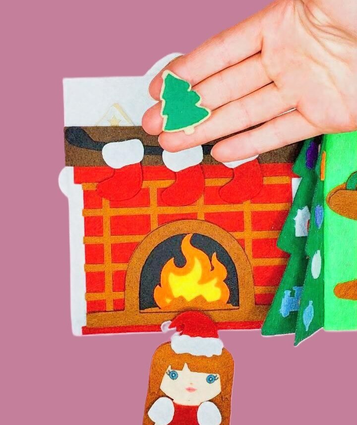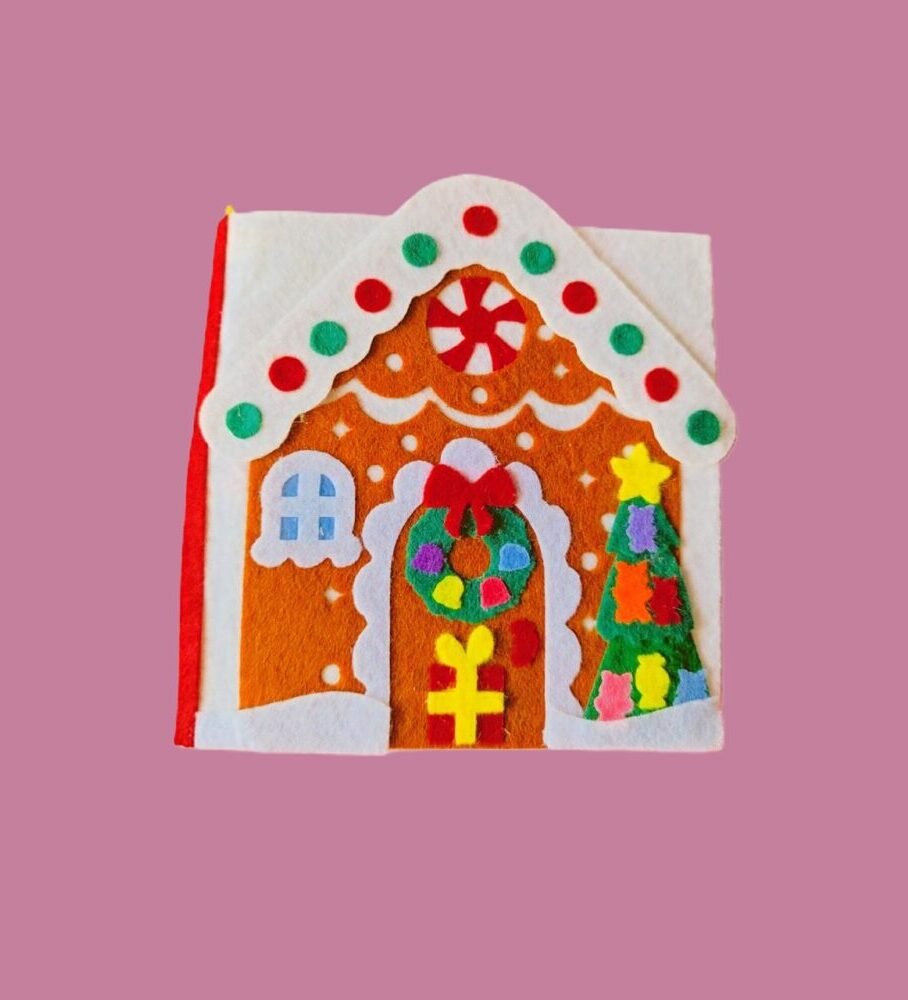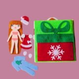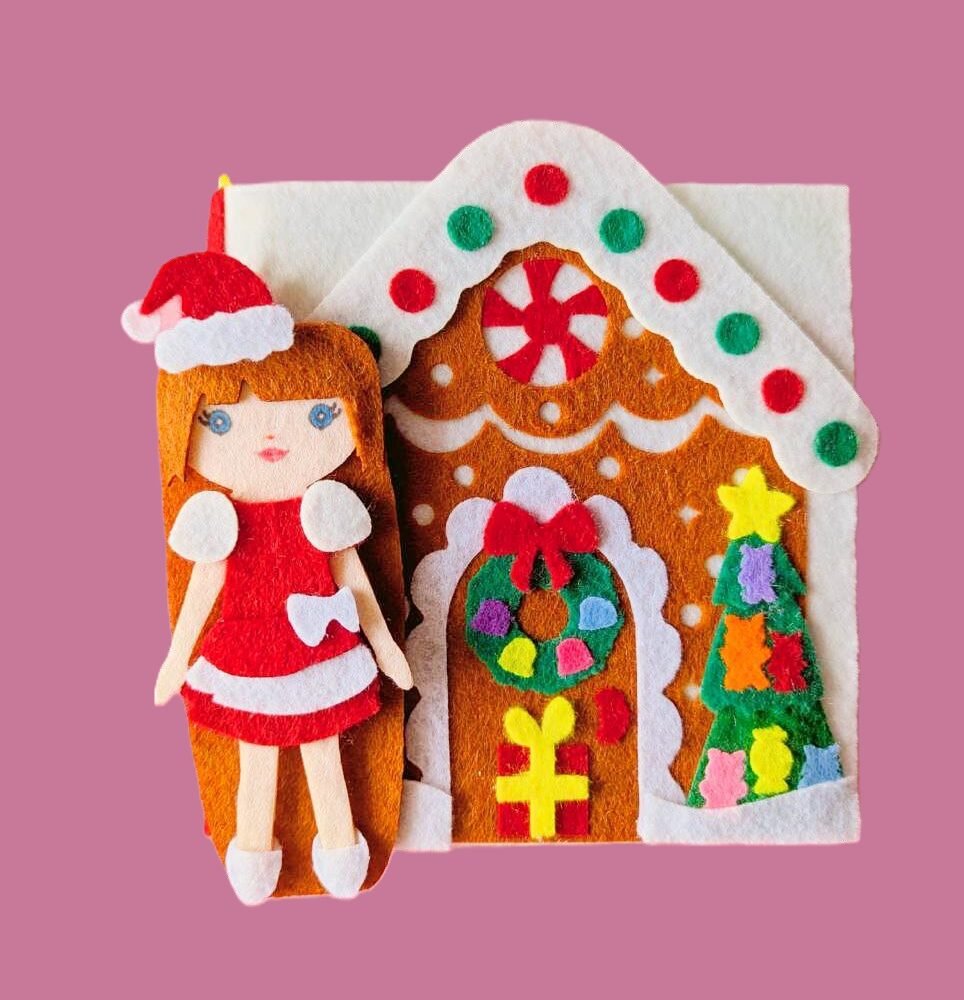 Bring the magic of the holidays to life with our cozy Gingerbread Christmas Play Set. This charming felt collection includes a sweet gingerbread house with a chimney, festive Christmas cookies, stockings, a twinkling Christmas tree, hot chocolate, a soft blanket, comfy pajamas, a Christmas outfit, and an adorable doll ready for holiday fun.